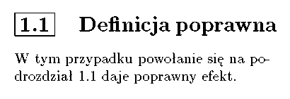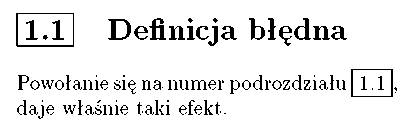 Powołanie się na numer podrozdziału~\ref{blad }, daje właśnie taki efekt.