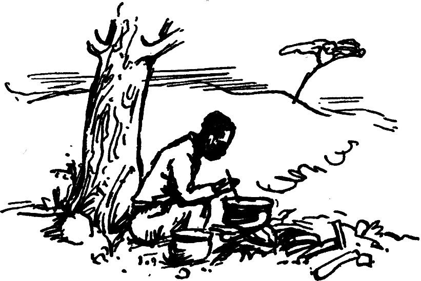 Der Nachtapparat war noch einfacher. Wir bedienten uns einer Safarikiste mit Loch und Pappscheibe wie oben, in deren Innerem eine Azetylenwagenlampe stand. Um die Verbindung mit den andern Posten aufnehmen zu können, mußten wir unsern Heliographenapparat auf einem nahen steilen und hohen Berg[11] aufstellen, und einer vom Posten mußte Tag und Nacht oben sein. Erst später bekamen wir zwei Signalwatote [Negerschüler] mit einem richtiggehenden Helioapparat.