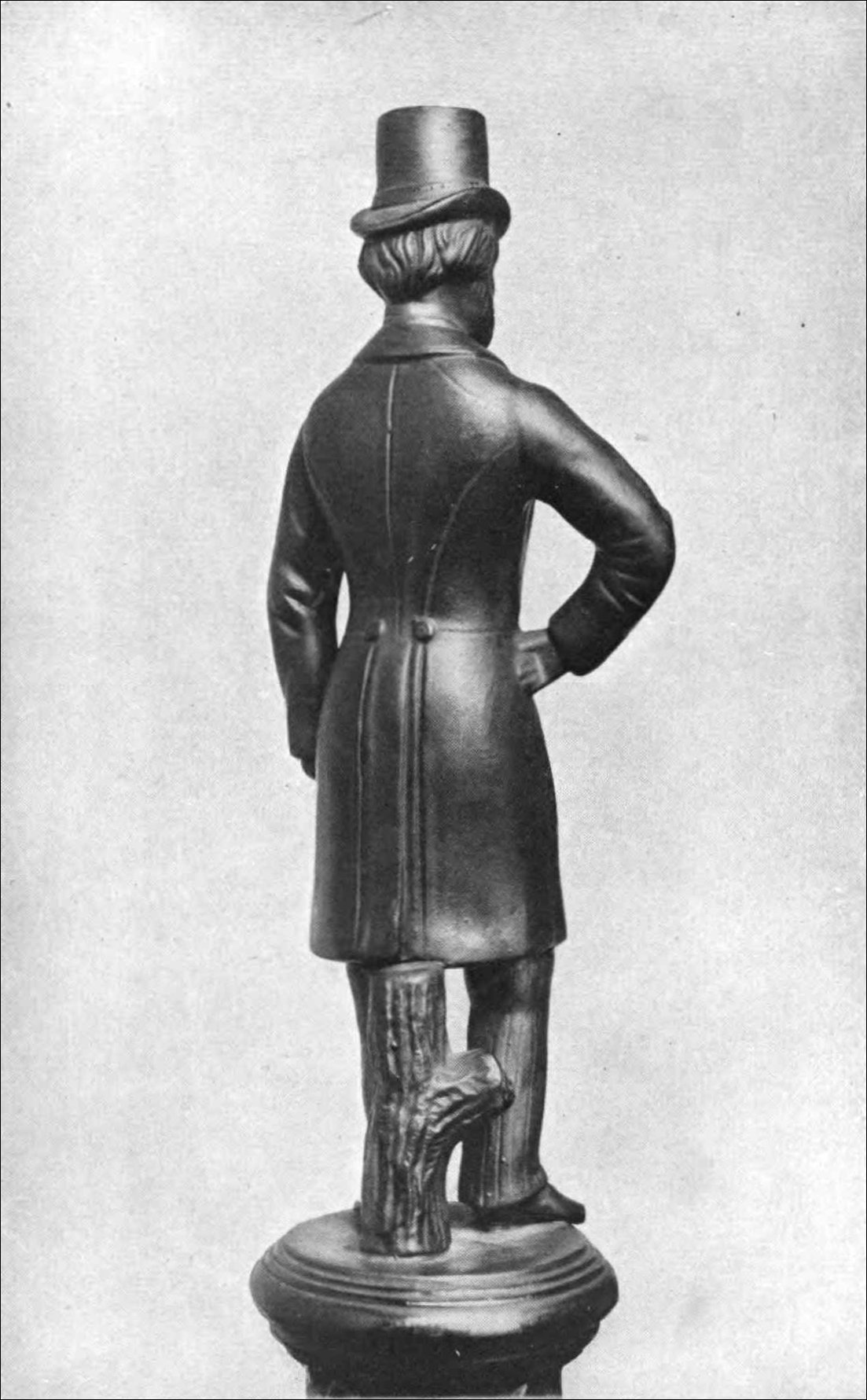 This is only an isolated example of the Academy’s efforts. Its field agents have collected, collated, segregated, documented, annotated, and filed over seventy-three hundred pounds (August 28, 1922) of reports on American-owned antiques alone. Some of them have undergone the most severe dangers; while two have even made the supreme sacrifice in their pursuit of duty. This tragedy cast a shadow over the entire Academy; for among its members there were no more ardent or well-informed students of antiques than Judson F. Rapp, Litt.D., and Herman Hymen Heller, of Cracow University. The beautiful Rapp-Heller monument, soon to be erected either in Washington, D.C., or in the lonely spot in Northern Maine where Dr. Rapp dug up the first known specimen of folding iron Colonial camping-stool, will represent[x] the Spirit of Antiqueing in a most dignified and touching way. Sketches for this monument have already been prepared by Mrs. Claudia Gaines Gumme, the distinguished sculptress; and the accepted sketch shows a stern-visaged New-England housewife refusing to accept seven dollars from Professor Heller for a beautiful Colonial cradle, while Dr. Rapp surreptitiously examines the bottom of a ladder-back chair in the shadow of a convenient highboy.